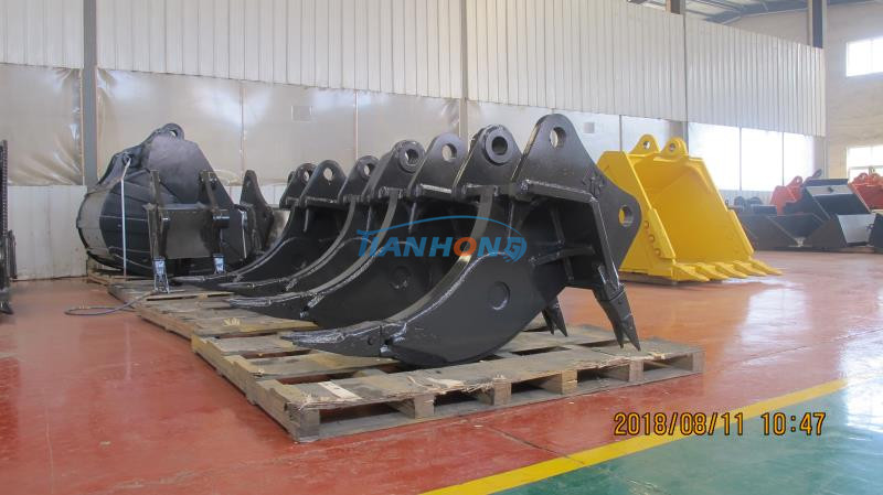 松土器:又名裂土器,此装备是根据挖机大小来定夺价格的,挖掘机越大采用的高强耐磨板越厚,焊接工艺要求越严格,正规厂家一般必须要求焊接探伤设备,才能保证出厂品质,它主要用来风化石施工,工况分层比较好用,挖斗挖起来费劲,破碎锤打起来又有点轻松浪费,这时采用松土器就会大大提高施工效率,先用松土器把土层或风化石层分离,然后用快速连接器切换挖斗装车,不把甲方乐开花都不行!